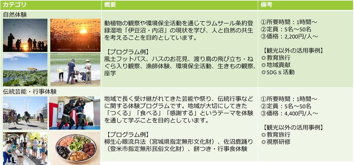掲載しているプログラムは目的・滞在時間・ご予算に応じた提案が可能です。お気軽にお問い合わせください。